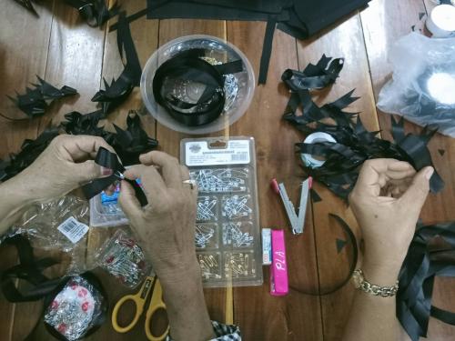 @ พช.คำชะอี จังหวัดมุกดาหาร ร่วมกับคณะกรรมการพัฒนาสตรีอำเภอคำชะอี /คณะทำงานขับเคลื่อนกองทุนพัฒนาบทบาทสตรี จัดกิจกรรม ‘ประดิษฐ์ริบบิ้นสีดำ’ เพื่อน้อมรำลึกในพระมหากรุณาธิคุณ
